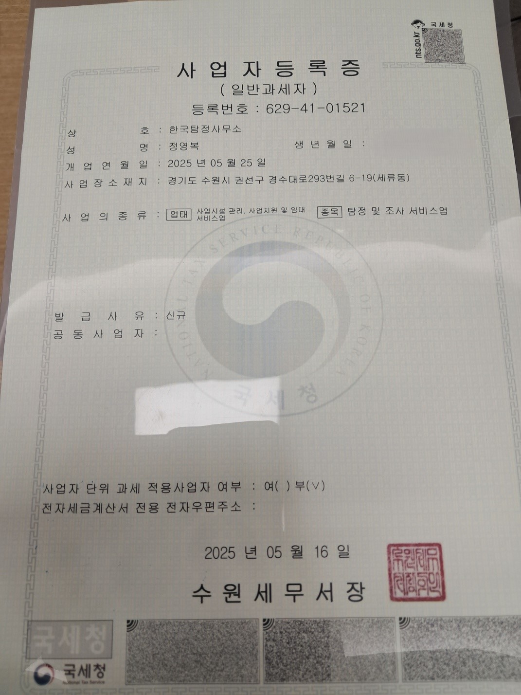사업장 주소 경기 수원시 권선구 경수대로293번길 6-19 (세류동)